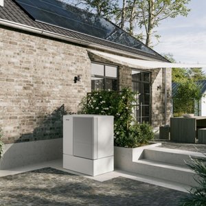 - Set bestehend aus außen aufgestellter Luft-Wasser-Wärmepumpe und Integralspeicher mit 168 l Fassungsvermögen zum Heizen, Kühlen und Warmwasserbereiten